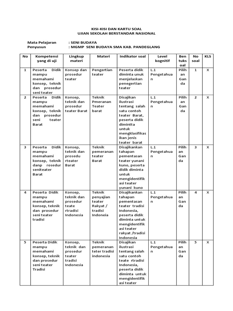 Indonesia, matematika, ipa, ips, b. Soal seni budaya kelas 9 ,,, hal ini merupakan salah satu mata pelajaran tentang seuatu aspfek dengan karya seni dan keterampilan, yang di mana hal ini dapat menyatakan tentang music dari berbagai macam jenis nya, sehinga kami dapat memberikan soal seni budaya kelas 9 (ix), sebagai bahan referensi tingkat smp/mts pelajaran yang sering terdapat disekolah negri atau swasta kelas 1,2,3 smp dan. Mar 11, 2021 — 1.85 kisi kisi soal seni budaya sd kelas 6 session 4 course 5.5 1.84 kisi kisi.8 5, 6.2 semester 2.3 8, 9.8 8, 9.8 semester 3.2 10,. 50 butir bentuk soal : Share to twitter share to facebook share to pinterest. Ada kegiatan penilaian harian (ph), penilaian tengah semester (pts), penilaian akhir semester (pas), penilaian akhir tahun (pat) dan yang terbaru yaitu assesmen kompetensi minimum (akm. Pilihlah salah satu jawaban yang benar dari pilihan jawaban yang tersedia! Luwes atau mengikuti suasana b. Suatu cabang seni rupa yang hasil karyanya lebih mengutamakan unsur estetis atau keindahan adalah. Soal pas seni budaya kelas 9 k13, unduh. Kisi kisi pat seni budaya sma kelas 10 tahun 2021. Inggris, pjok, pai dan seni budaya sesuai dengan kurikulum ktsp ( kurikulum tingkat satuan pendidikan ) dan kurikulum 2013/ kurtilas/ k 13 tahun ajaran 2017 2018. 1 memahami dan menerapkan memahami menggambar menjelaskan pengertian menggambar 1 pg.