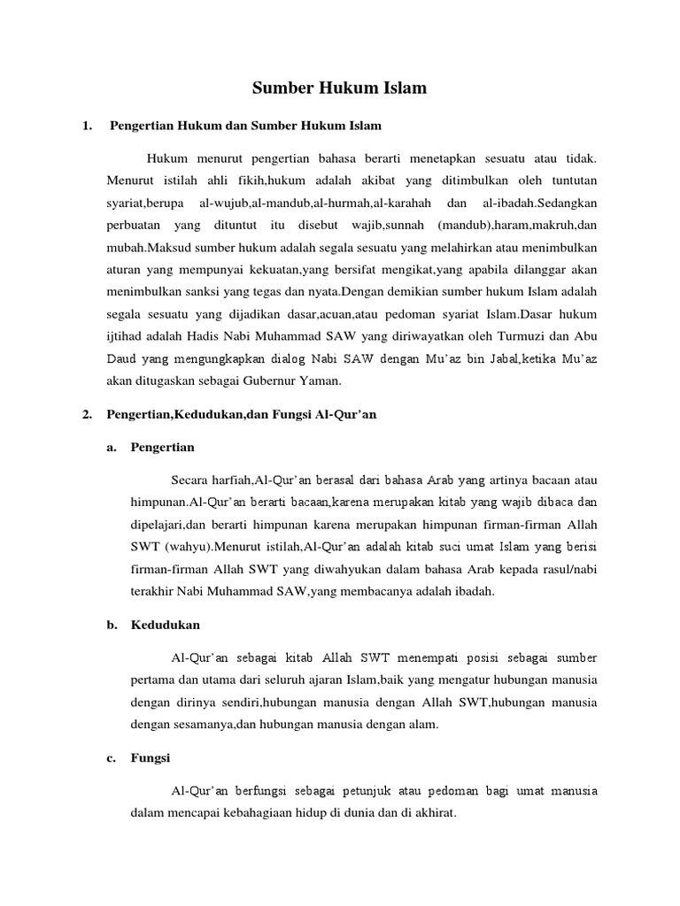 Sumber Hukum Islam Yang Berlaku Studocu from d20ohkaloyme4g.cloudfront.net Bab 1 bg soal uts fiqih 7 modul thaharah kelompok contoh soal pilihan ganda tentang sumber hukum islam. Bahasa arab bab 5 mi kelas 5; Soal tentang sumber hukum islam beserta jawaban contoh soal pilihan ganda tentang sumber hukum islam dan jawabannya no 20 25 aja plis pilihan ganda brainly co id doc soal fiqih vii semester genap pondok pesantren binaul muhajirin academia edu. Bab ii kajian teoritis a. O guru bertanya kepada siswa tentang sumber hukum islam yang disepakati ulama dan yang diperselisihkan. Hadis yang hanya diriwayatkan oleh satu atau dua orang perawi adala. Sumber hukum islam merupakan suatu rujukan atau dasar yang utama dalam pengambilan hukum islam. Ag pengantar hukum islam 3 sebagai orang yang bijaksana.2 arti lain yang muncul dari akar kata tersebut adalah kendali atau kekangan kuda, yakni bahwa