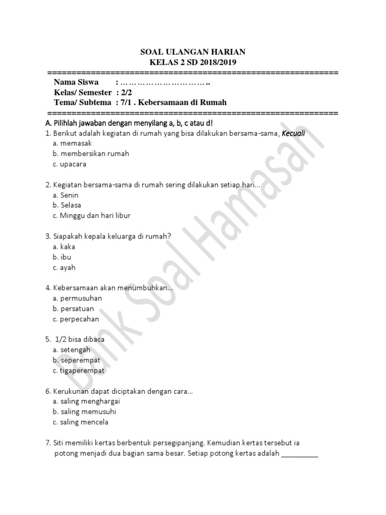 Maybe you would like to learn more about one of these? Soal kelas 2 tema 7 kebersamaan. Check spelling or type a new query. We did not find results for:
